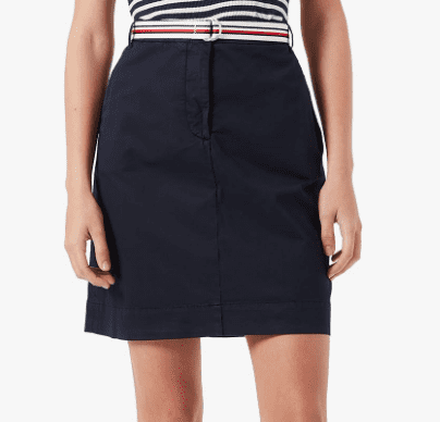Minifalda estilo chino, confeccionada en un tejido teñido en prenda, está confeccionada en cómodo algodón ligeramente elástico y presenta una elegante silueta.